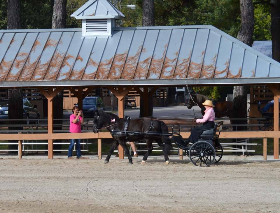 The Classic had dressage, cones, rail class, a pick your own route cones class and a marathon. I enjoyed working with my pony and driving along the route. There was a small water crossing that if I had been mounted would not have seemed like much. But in the carriage you have to be very careful and remember she needs to pull you up and out of anything you get down into. She was a champ!