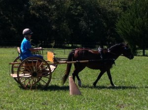 I have driven Notey in several events now, in the spring we drove in a “Mini” CDE (Combined Driving Event) at Shelby Farms in Memphis. She was really good, except for one incedent with a kite, she bucked in the shafts of the cart, but I got her moving forward again after that and we finished the day. We won the CDE!
