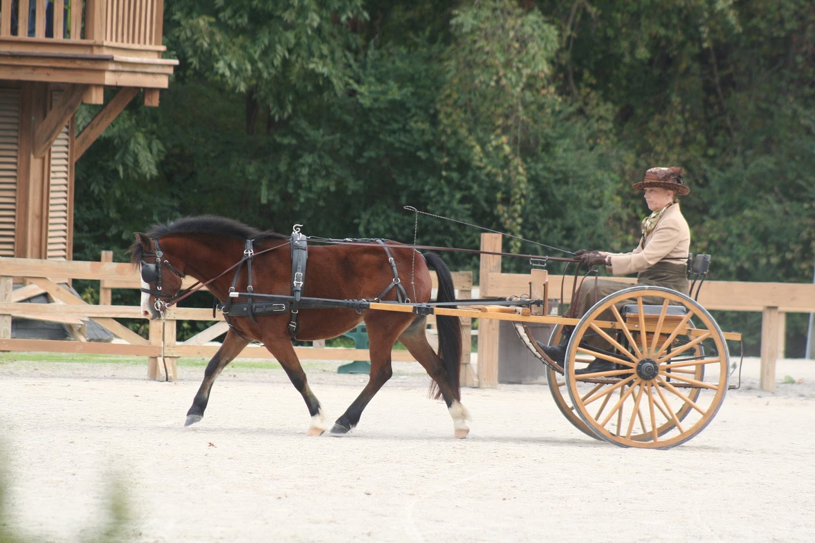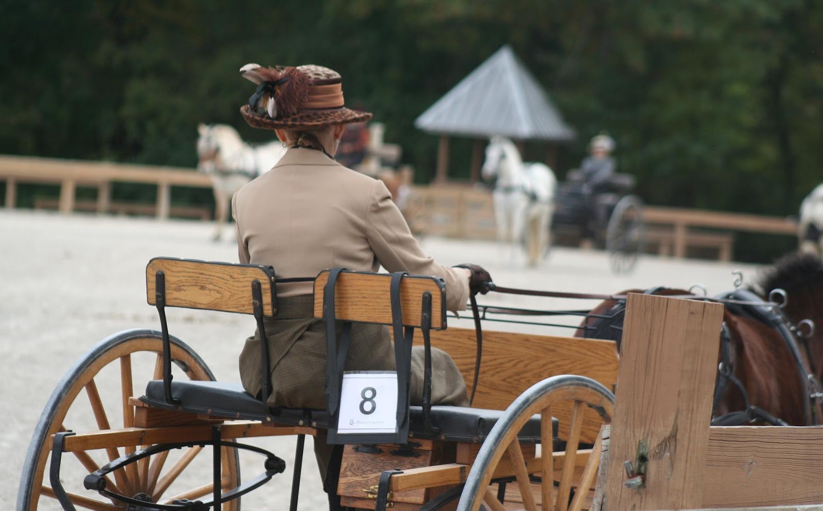 The clothing that goes with carriage driving is so much fun. I have worn the same jacket for many years because I couldn’t find anything better. Well this year I wore a pink jacket and scarf with my straw hat. I loved it! My pony even had a pink ribbon in his hair.
