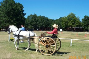 April 23, 2005 – We went to Franklin, TN for a Traditional Day of Driving. Here is Notey taking me and Kelly over hill and dale. We had so much fun at the event. Notey was wonderful. We did a cones course, an obstacle course and a cross country of 8 miles. It was great – the longest drive I have done to date. I want to do more!